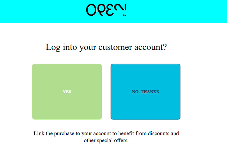 The guest can register their “Customer ID” or scan a QR code connected to their Customer user from the OPEN One database to connect their customer account to the purchase, and get potential discounts connected to their customer account.