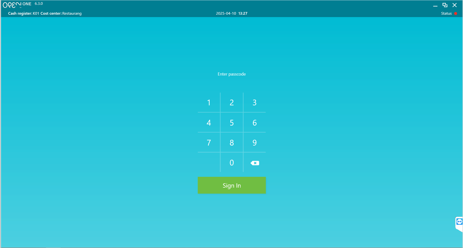 - Simply enter your passcode and press Sign In. If it’s the first time the cash register is being logged into during the day, a window will appear where you need to count and enter the cash float.