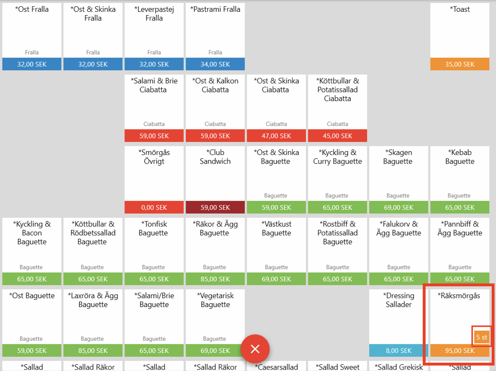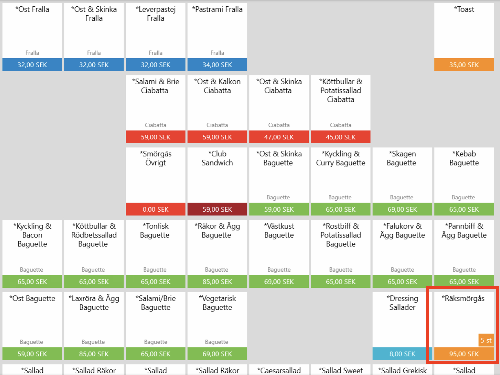 8. The number of articles of the article will be visible on the article card. This is to easily see how much of the Mini stock is left. In the example, 5 Shrimp Sandwiches are shown left.