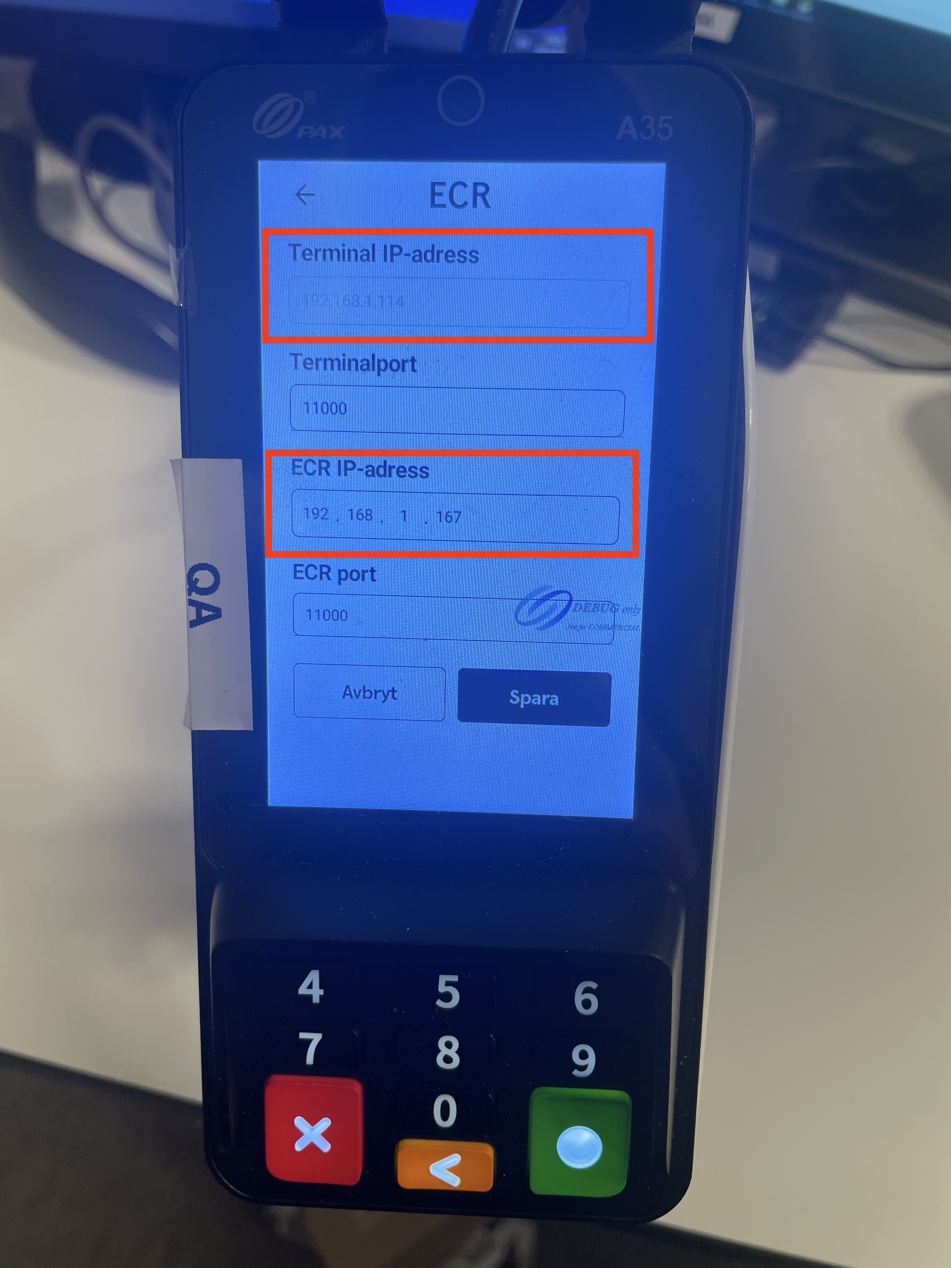 4.3 Under ECR are the IP addresses for the cash register and the card terminal. The terminal's IP address is displayed under Terminal IP address and the cash register's IP address is displayed under ECR IP address. If the ECR IP address is missing, you can fill it in manually here. If the Terminal's IP address is missing here, it is in the start mode on the card terminal's display. The terminal's IP should automatically come to the cash register, but if it does not, enter it manually in BackOffice.