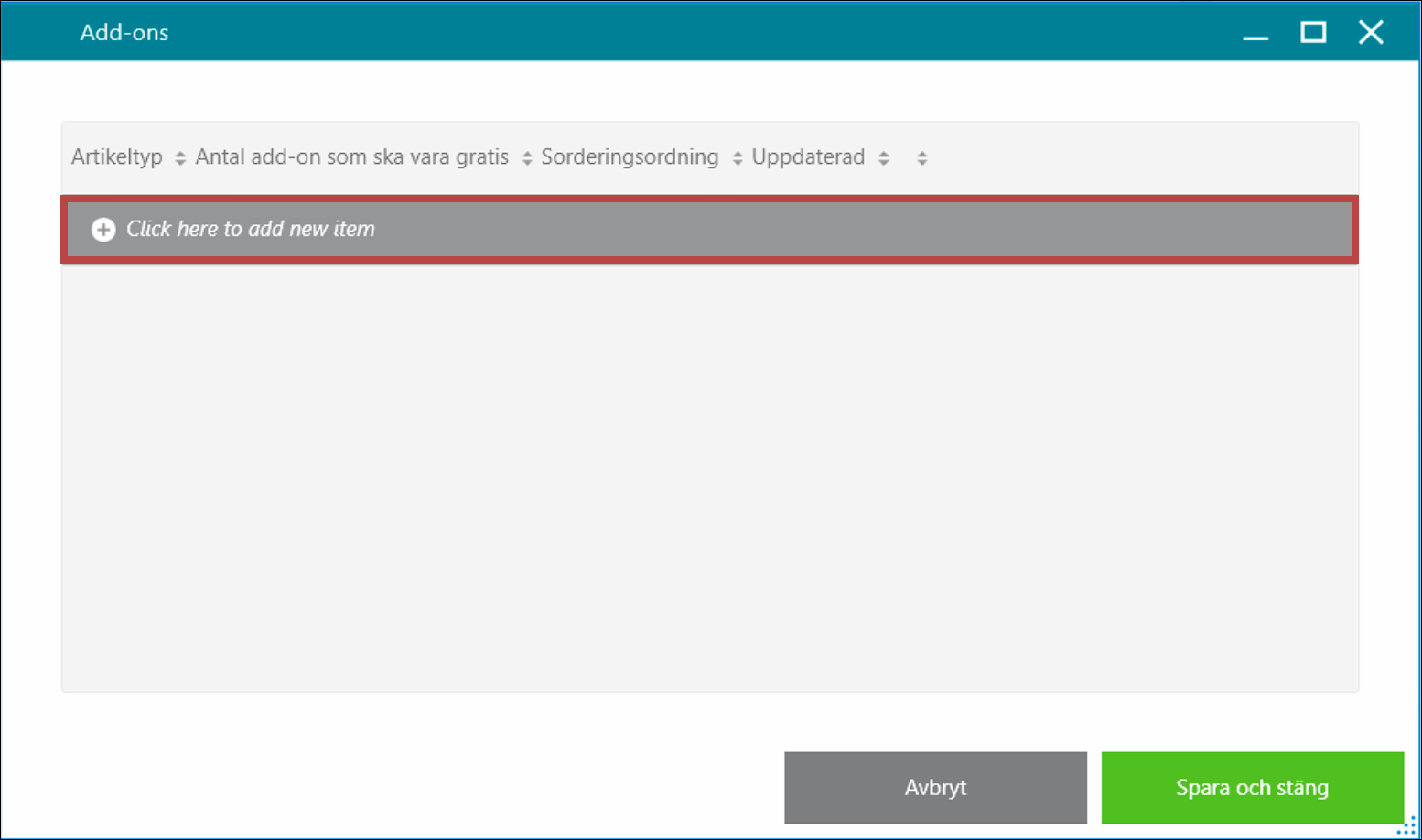 - Antal add-ons som ska vara gratis: Om t.ex. ett tillval ska vara gratis, skriv 1 i fältet.