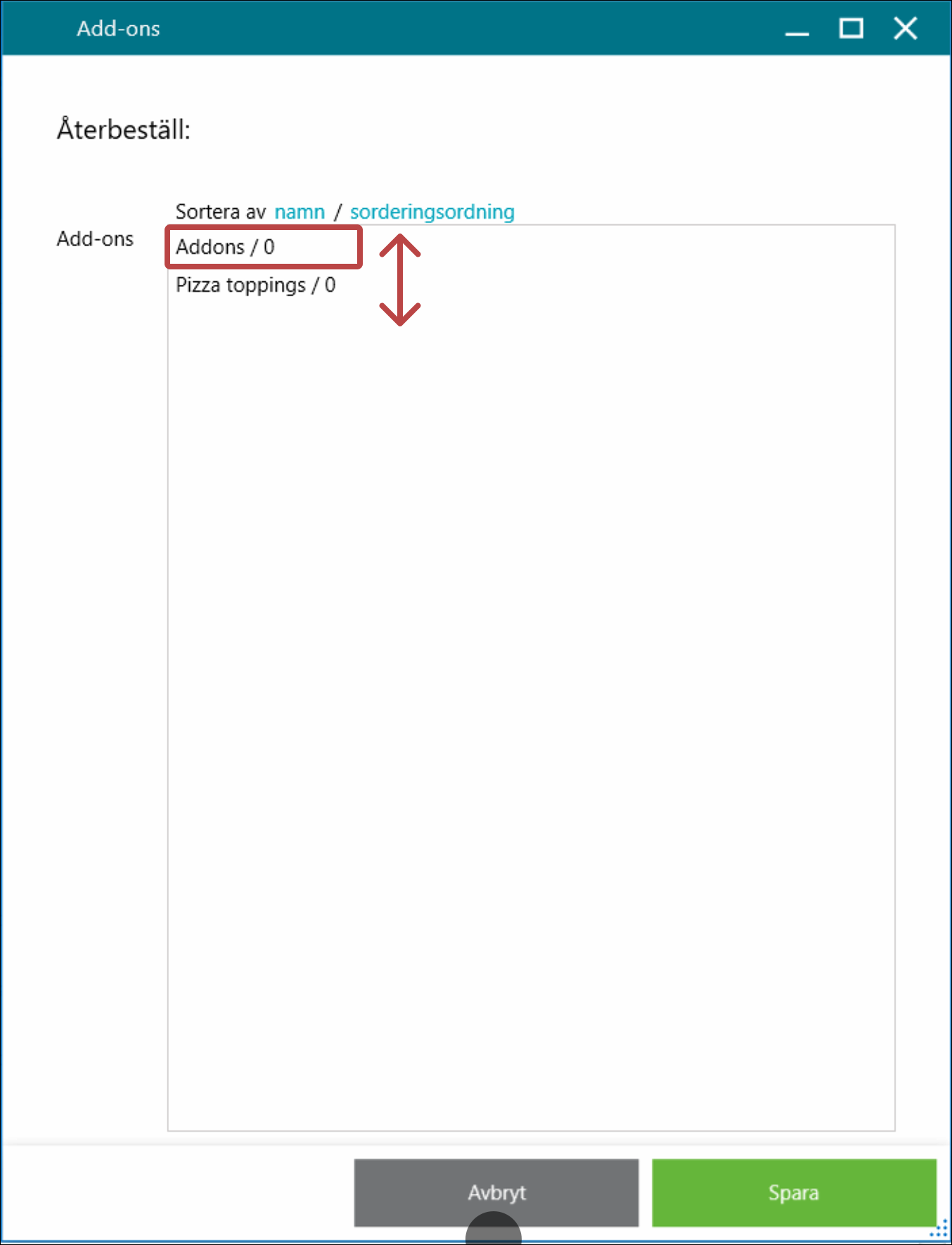 Om du har flera add-on-grupper kopplade till en artikel, kan du sätta sorteringsordningen för hur de visas från artikeldialogen.