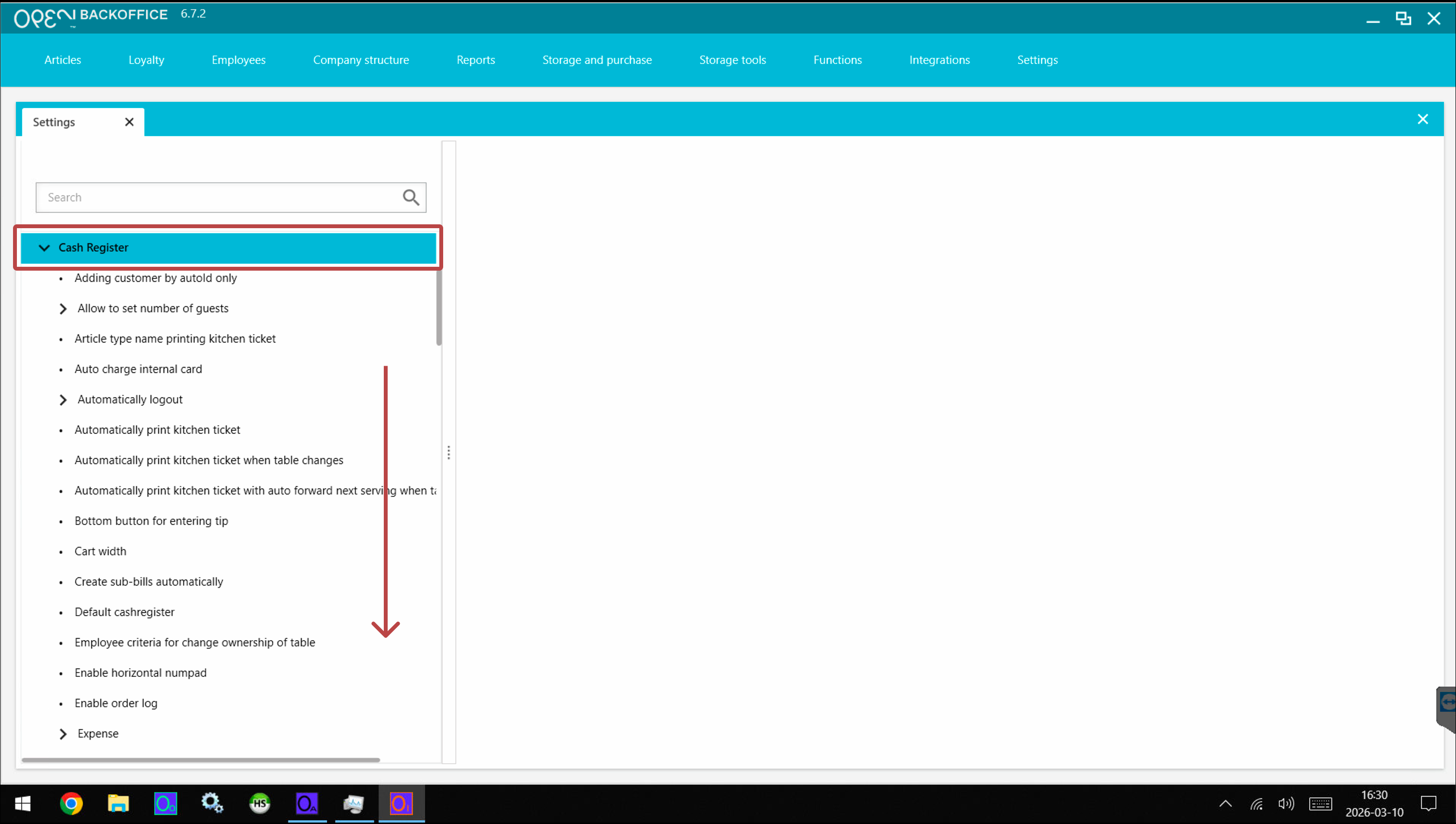 - Expandera avsnittet Kassa och bläddra nedåt för att hitta inställningen Beställningsnummertyp.