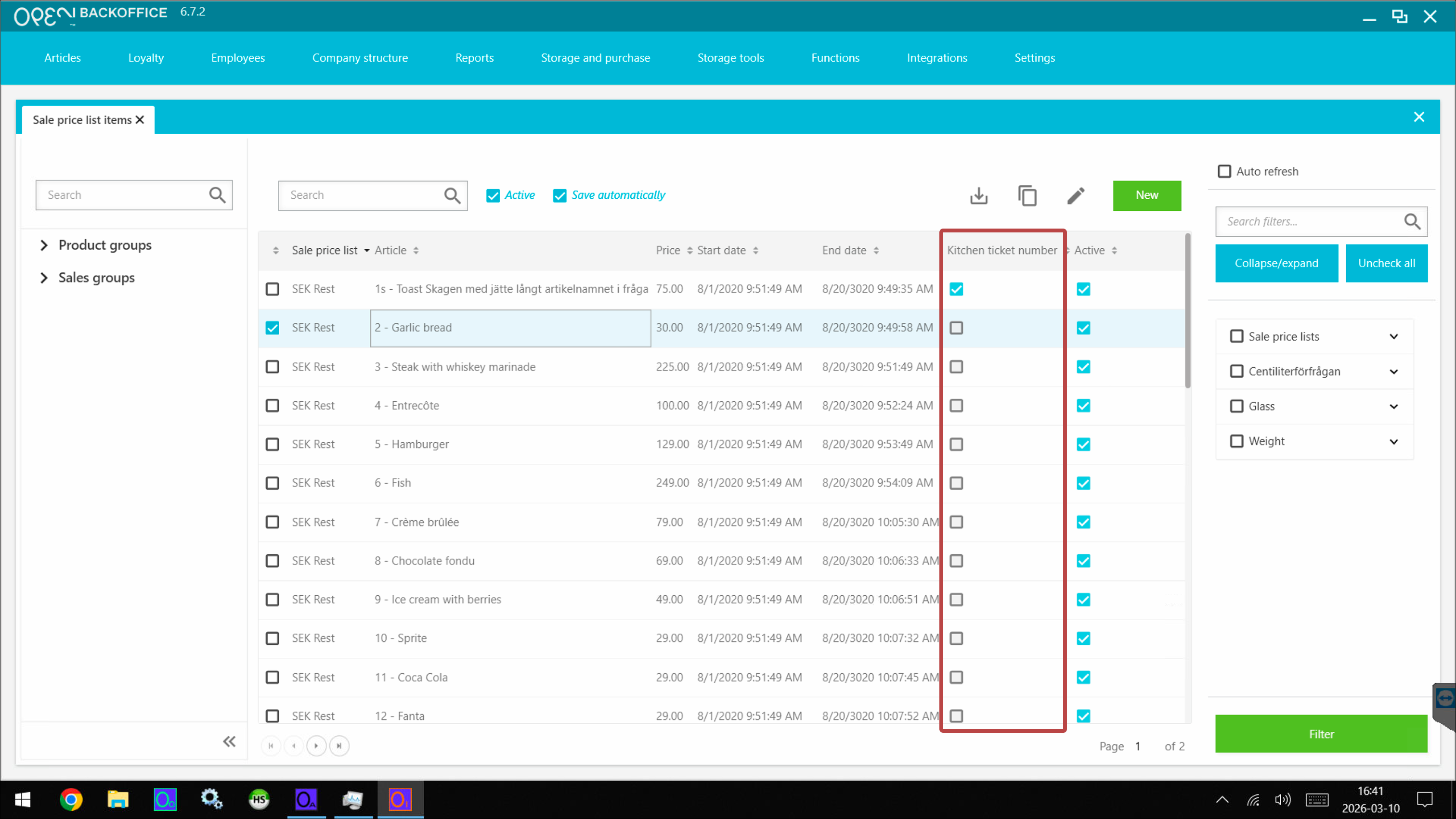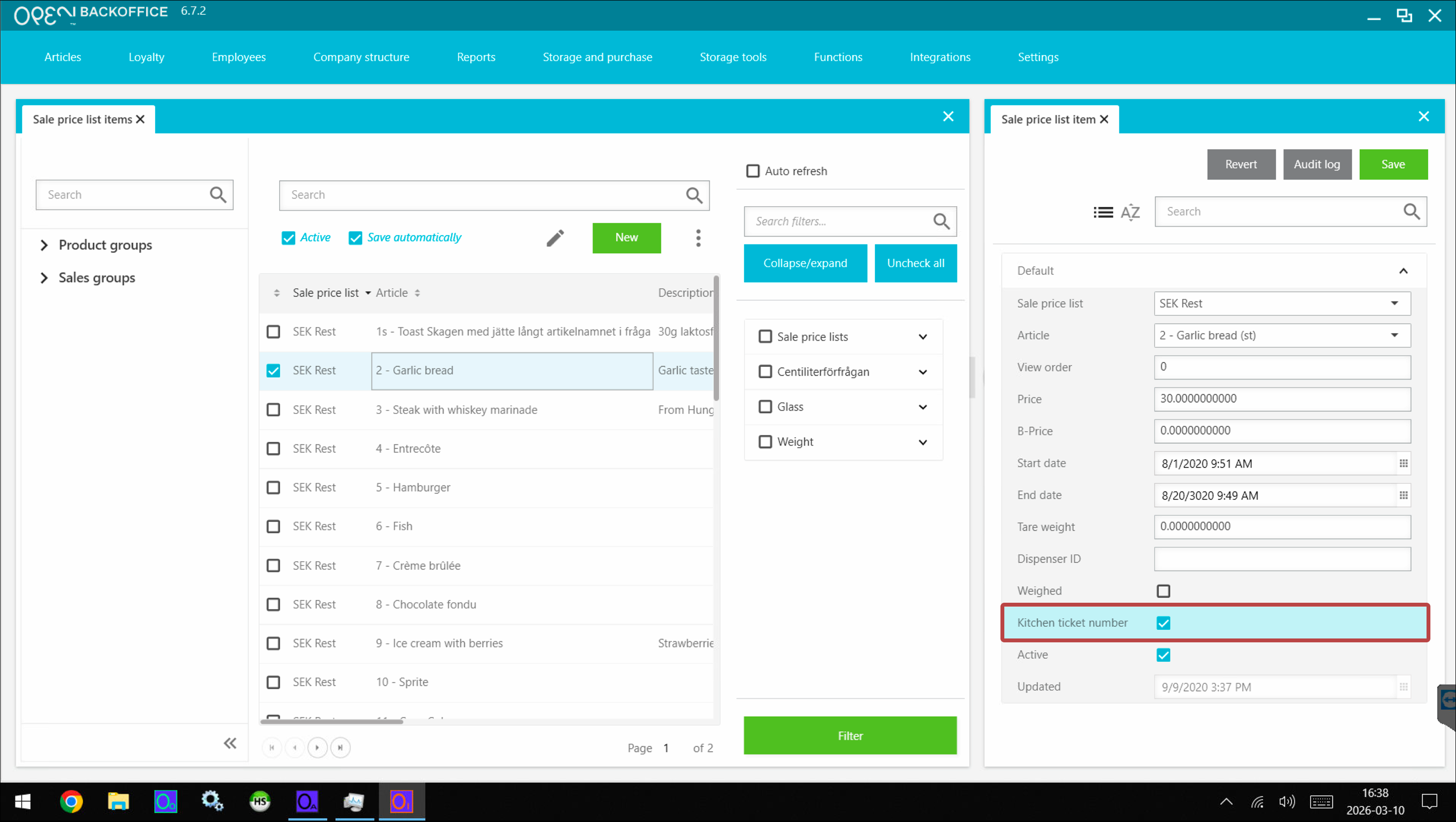 För att ordernumret faktiskt ska skrivas ut på köksbongen måste du också aktivera beställningsnummer på dina artiklar.