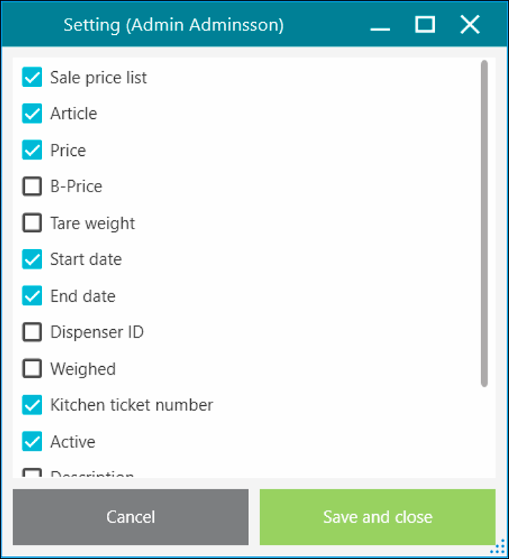- Välj vilka inställningar (dvs kolumner) som du vill visa i tabellen.