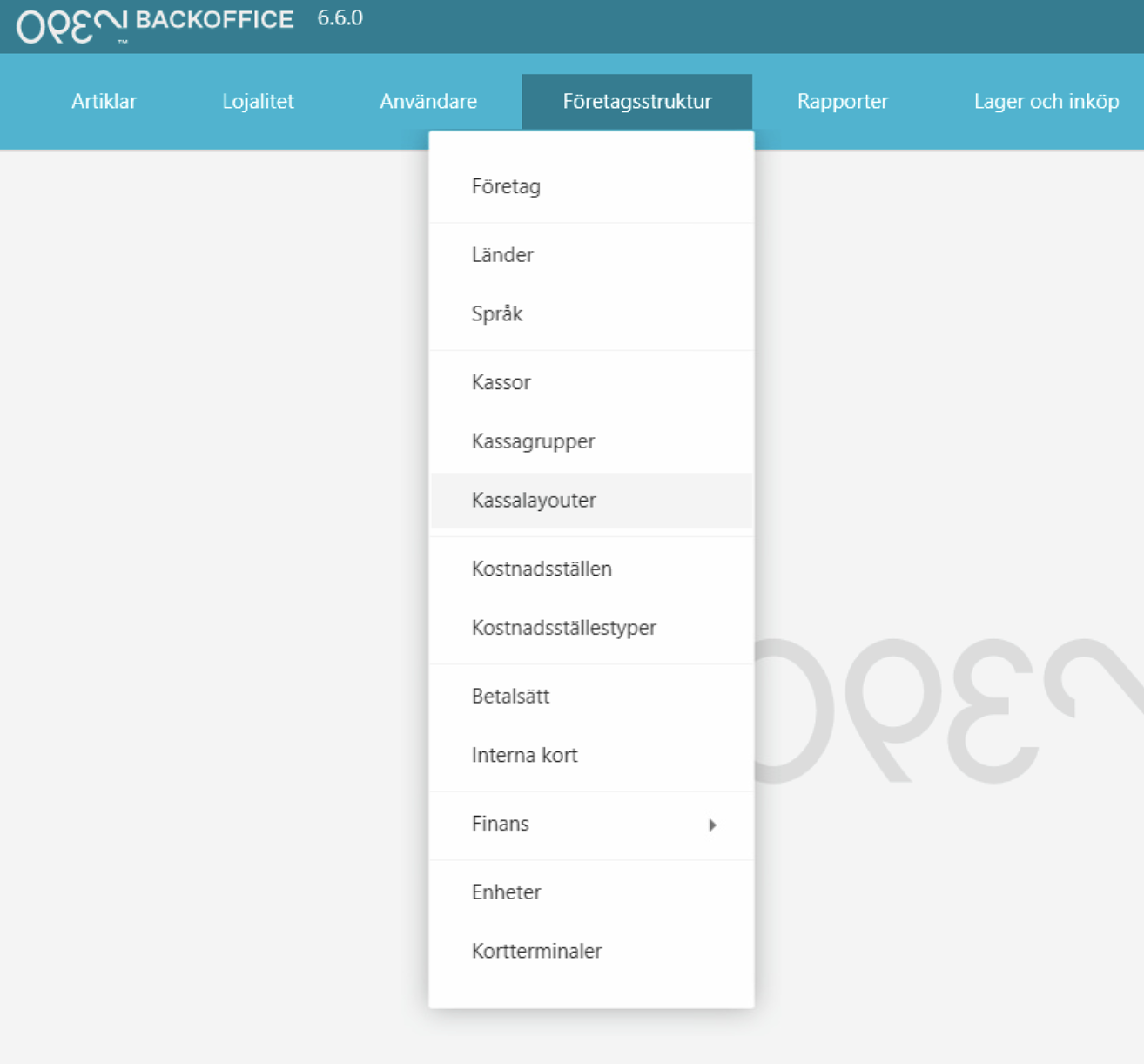 1. I BackOffice, Gå till Företagsstruktur --> Kassalayouter.