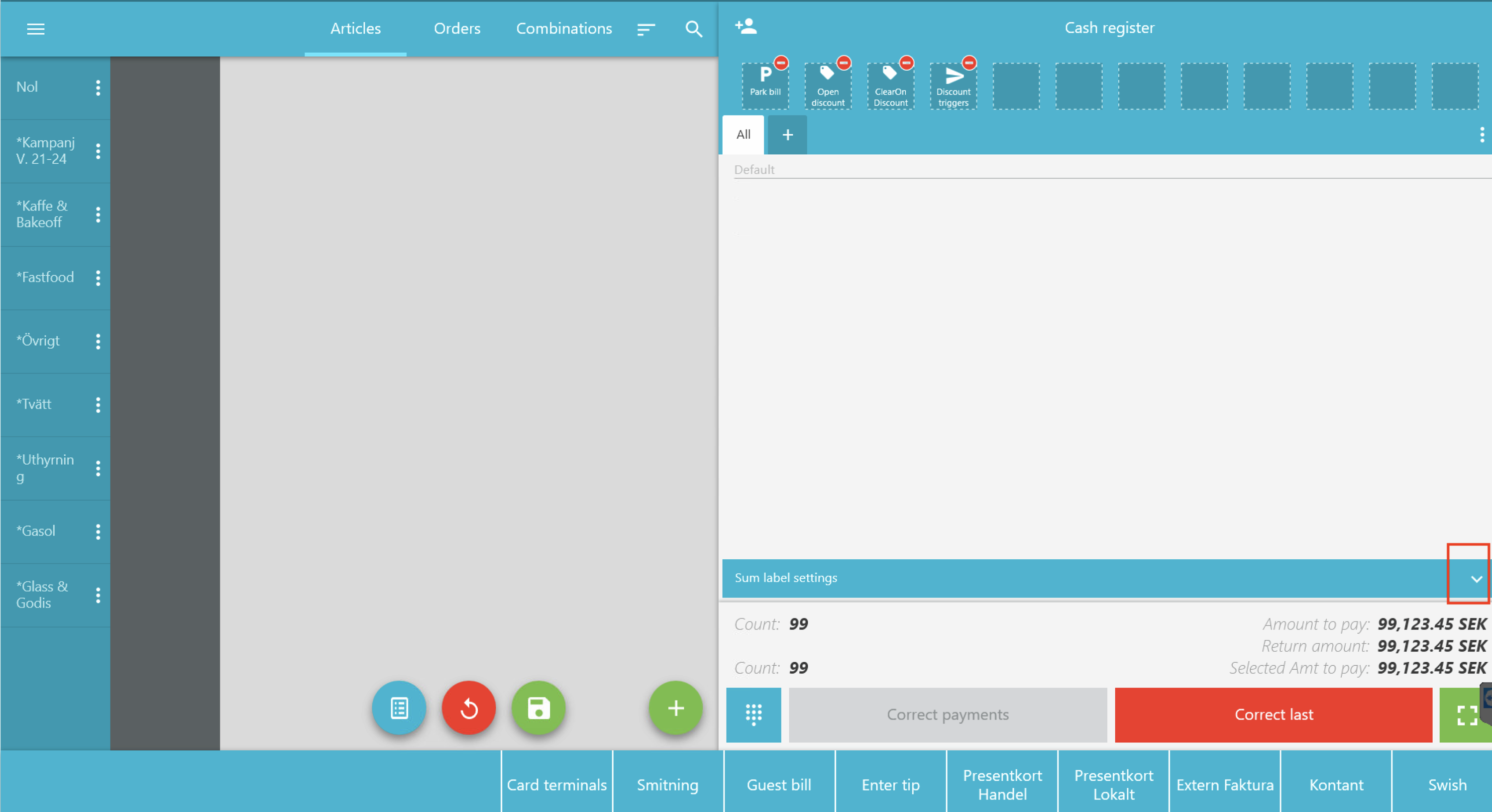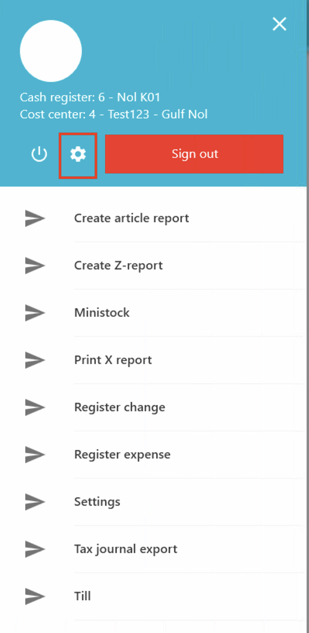 Gå till inställningsläge i kassaregistret.