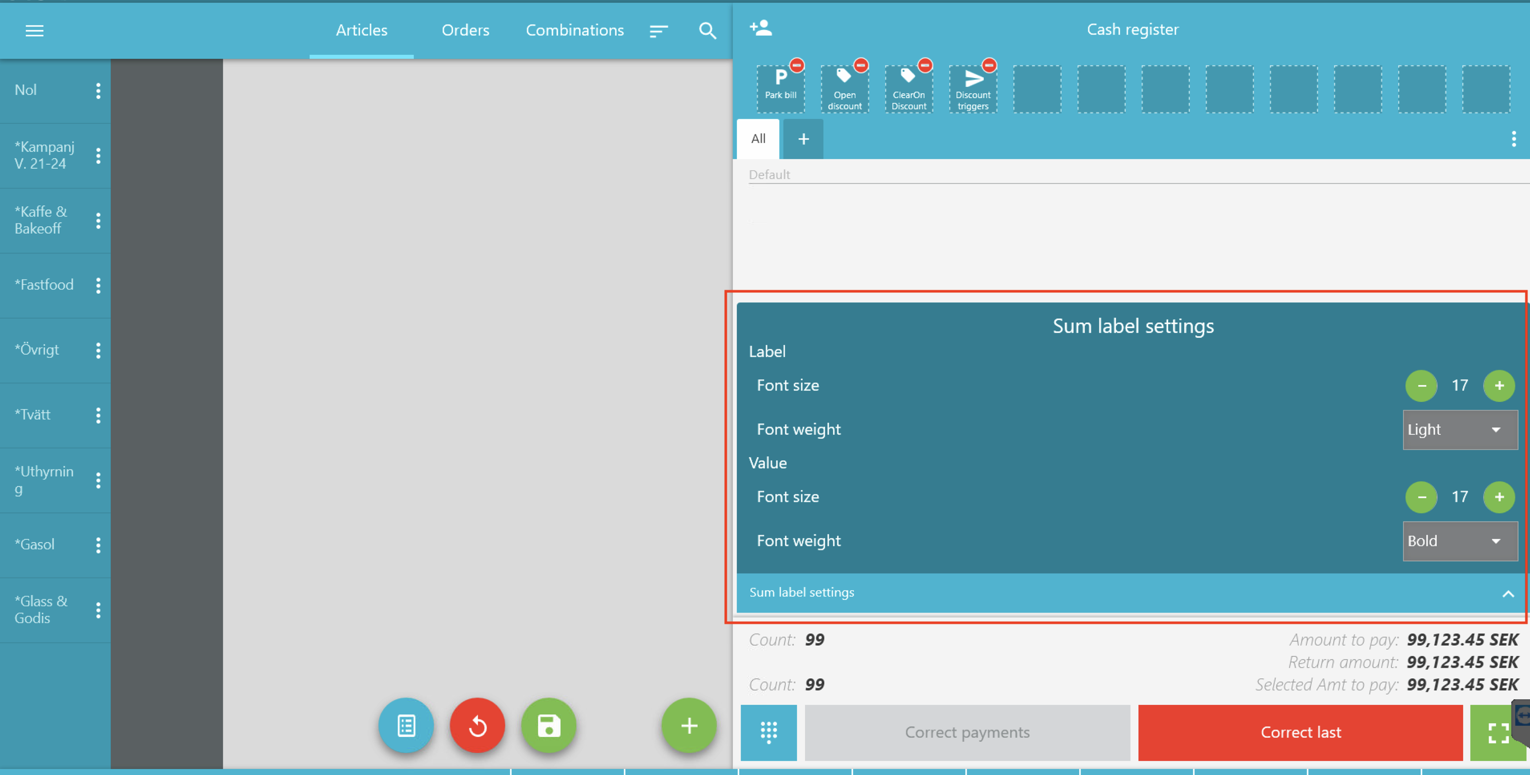 Dra ut kassan genom att klicka på pilarna och ändra till önskad textstorlek och text-tjocklek.