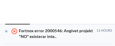 Fortnox error 2000546: angiven projektkod. t.ex. "NO" finns inte...
