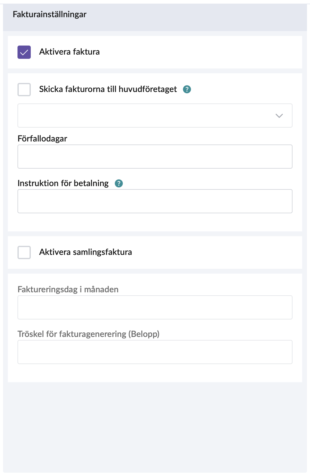 Välj ifall fakturering ska vara aktiverat för kunden.