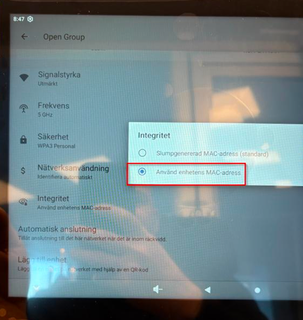- In the dialog box that opens, select Use device MAC address.