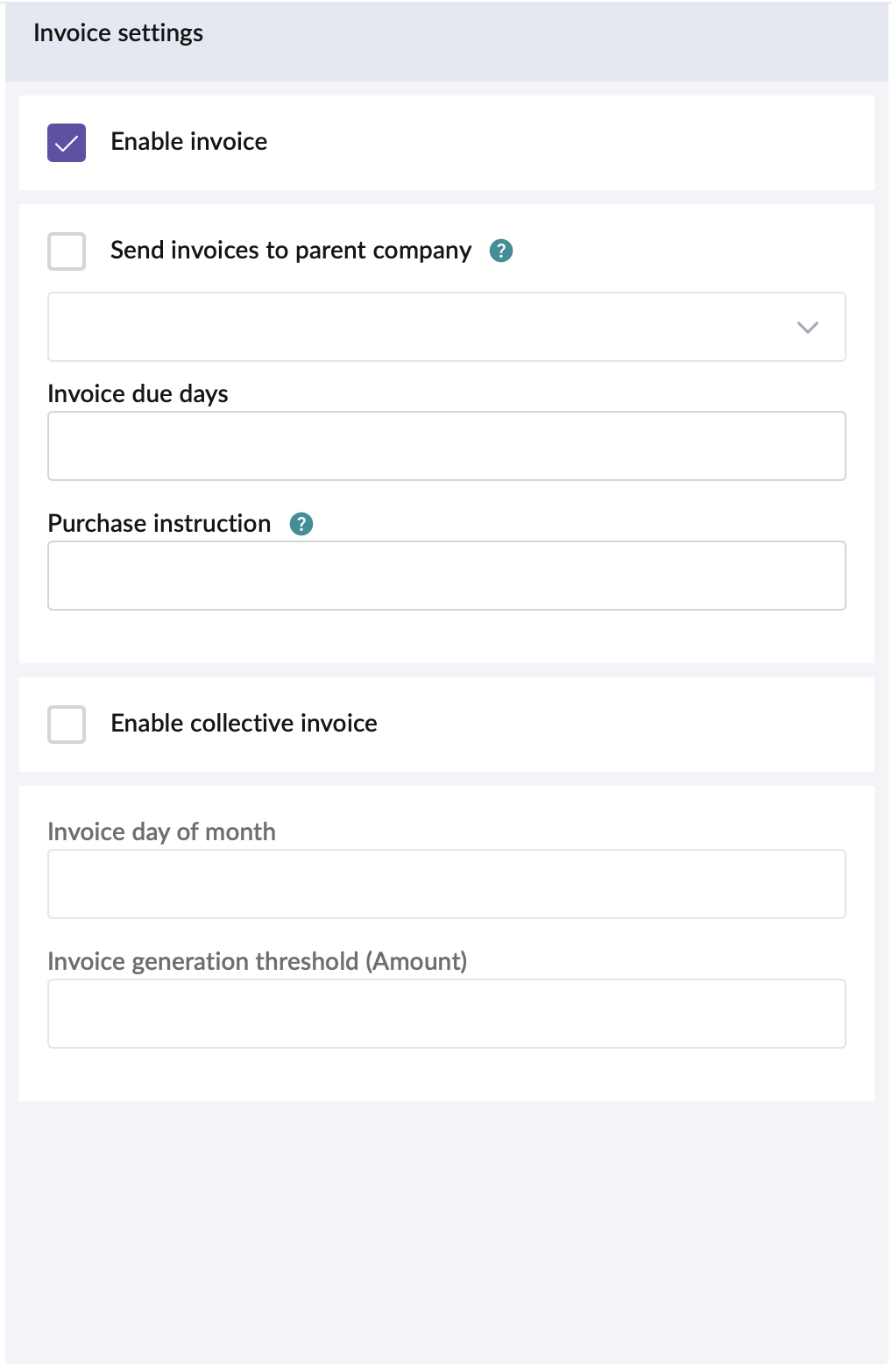 Then you choose whether you want the invoice to be sent to the main company. If activated, the customer account for the main company will receive the invoices.