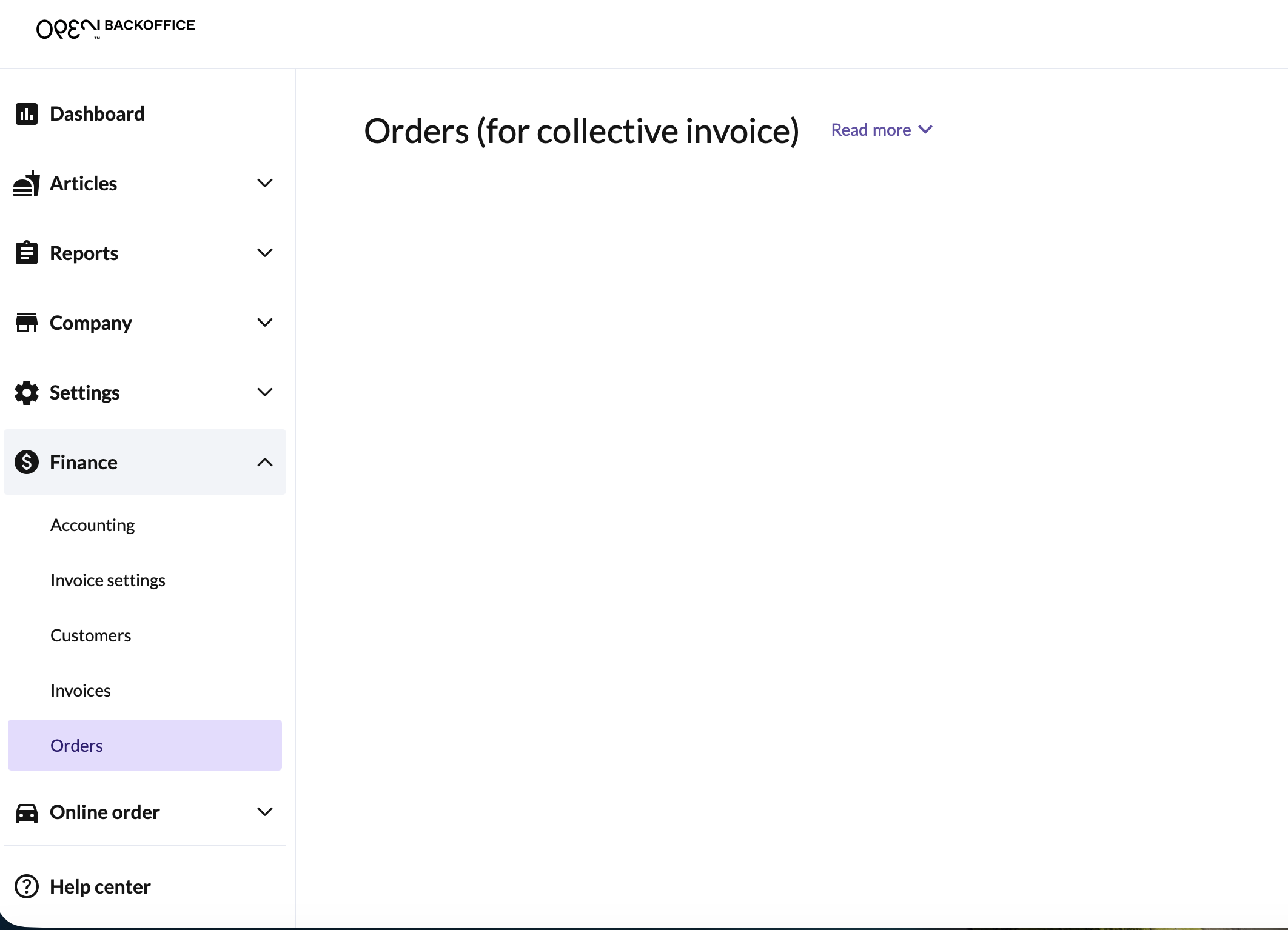 You will now have access to the Invoice Settings, Customers, and Invoices pages in BackOffice, under the Finance menu.