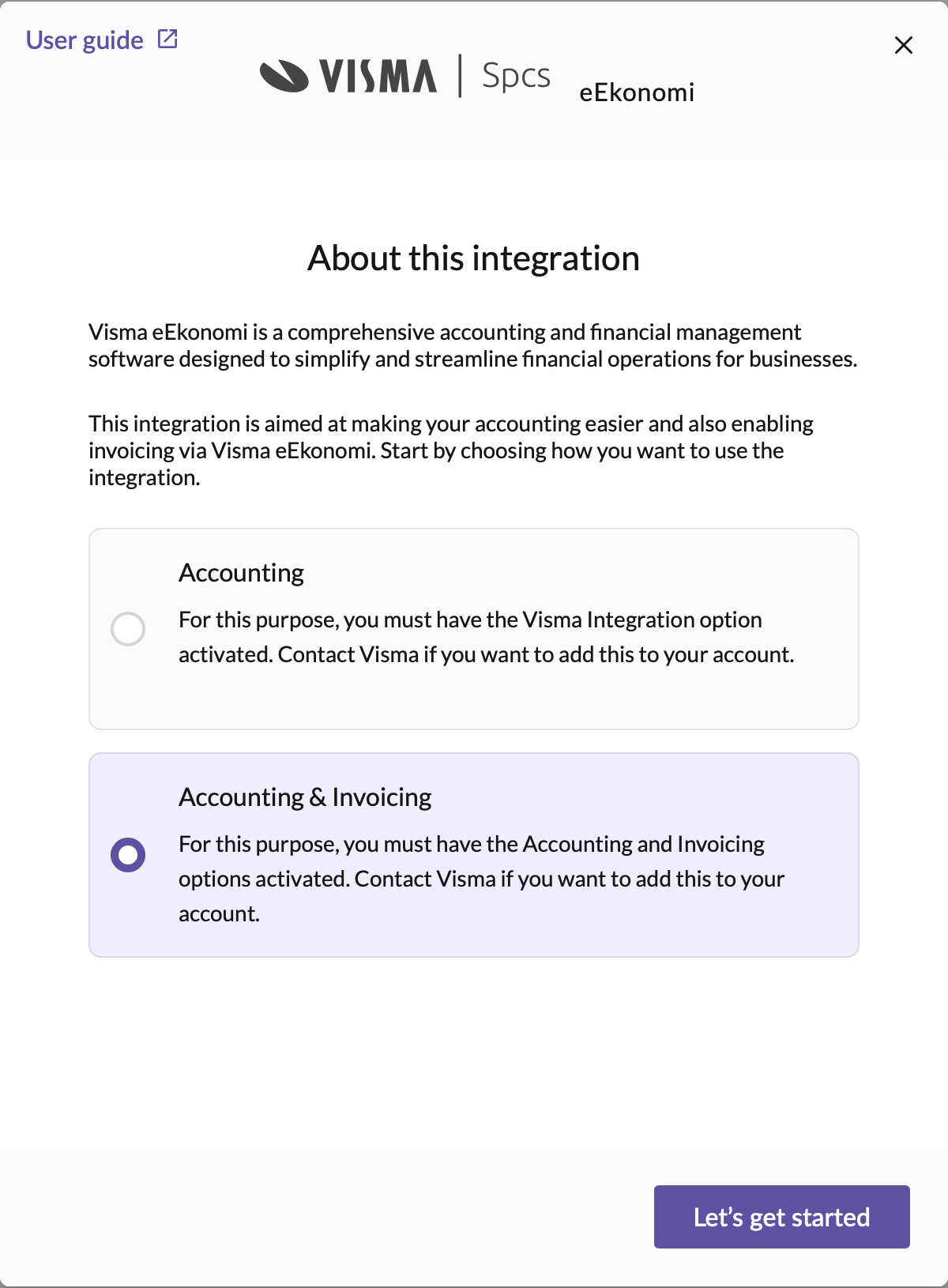 Activate the Visma Spiris integration with Accounting & Invoicing