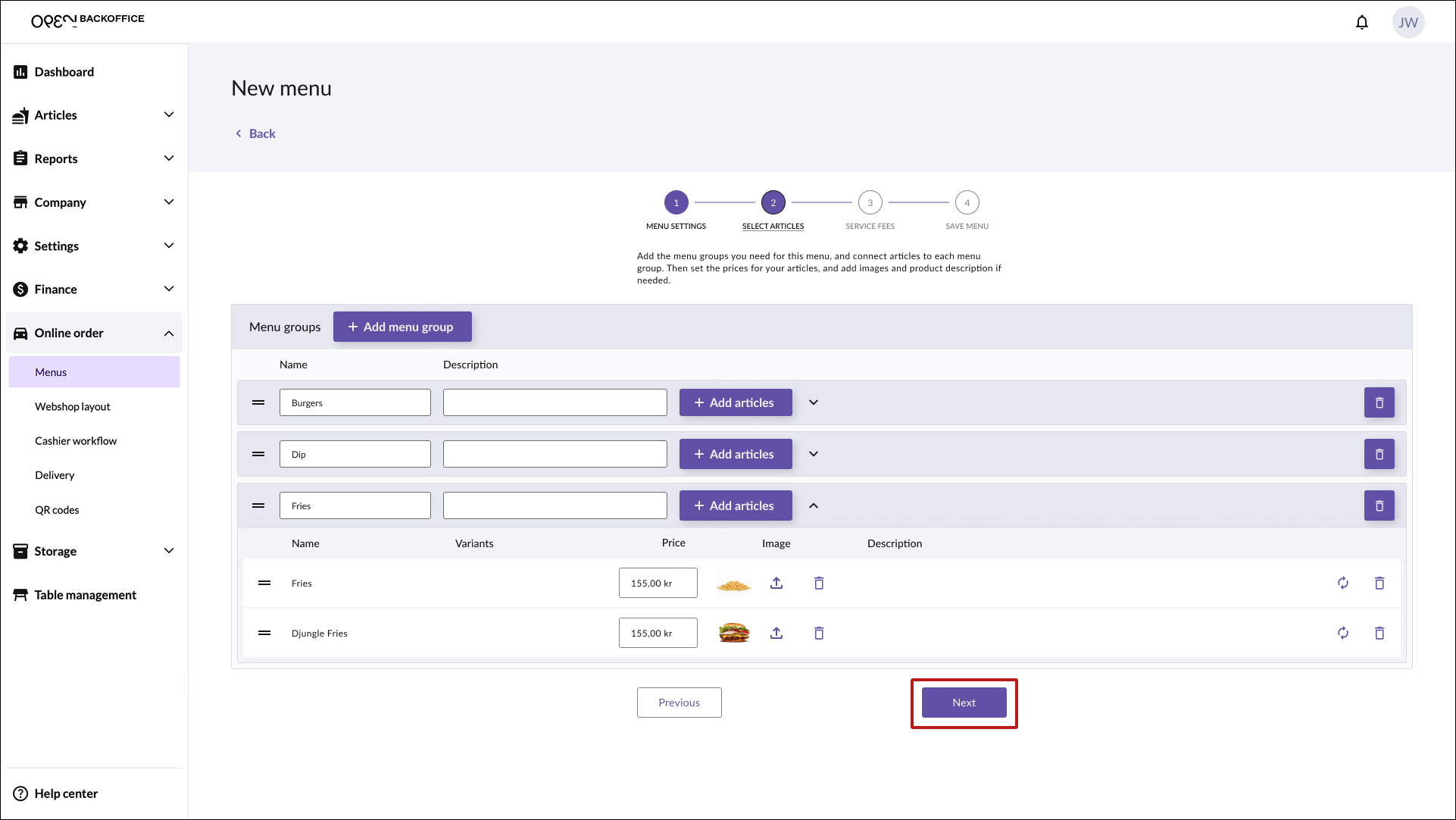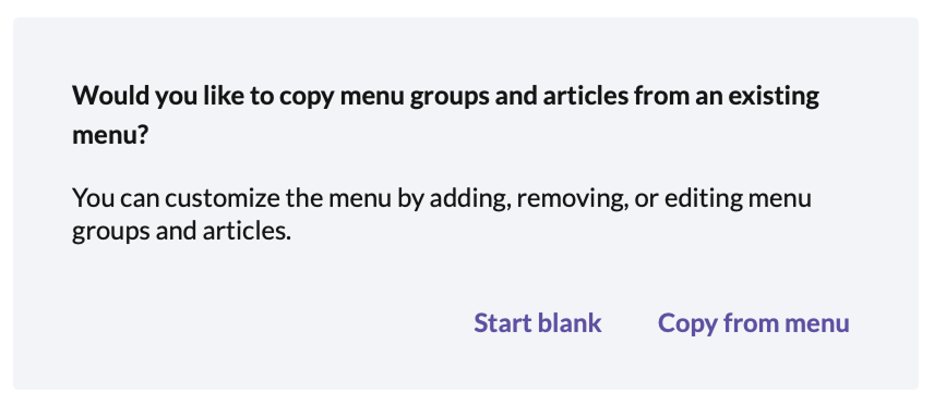 Choose if you'd like to copy menu groups and articles from an existing menu or start blank.
