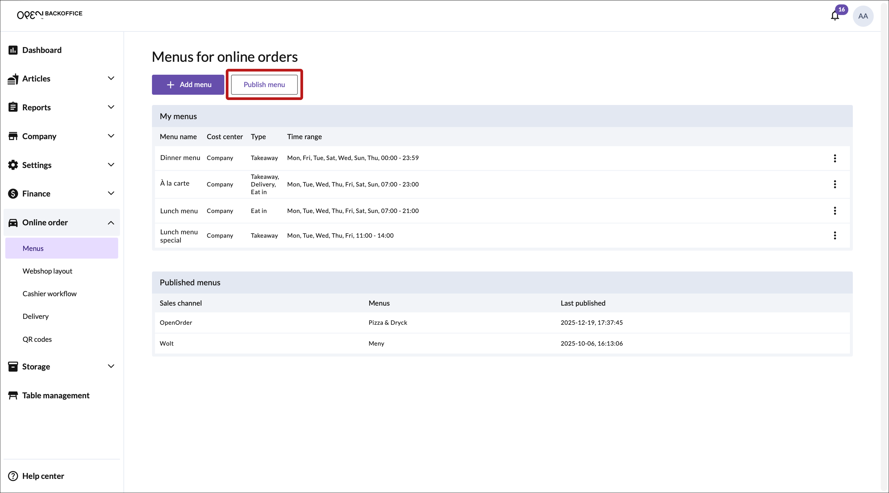 Once your menu is ready, you need to make it visible to customers by publishing it.