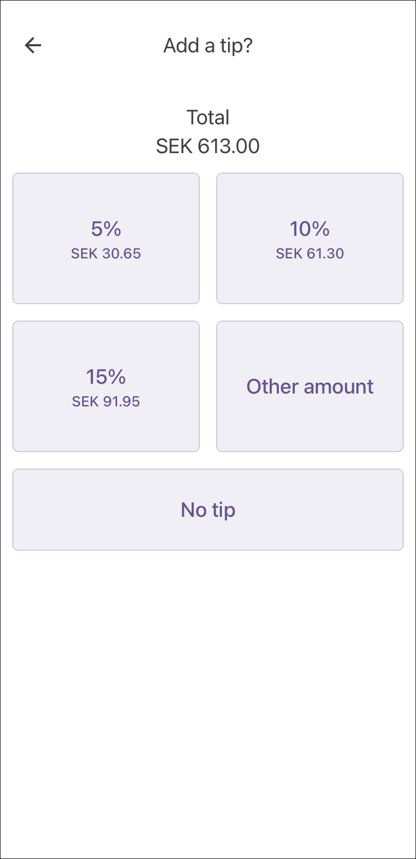 - If tipping is enabled, select a tip amount.