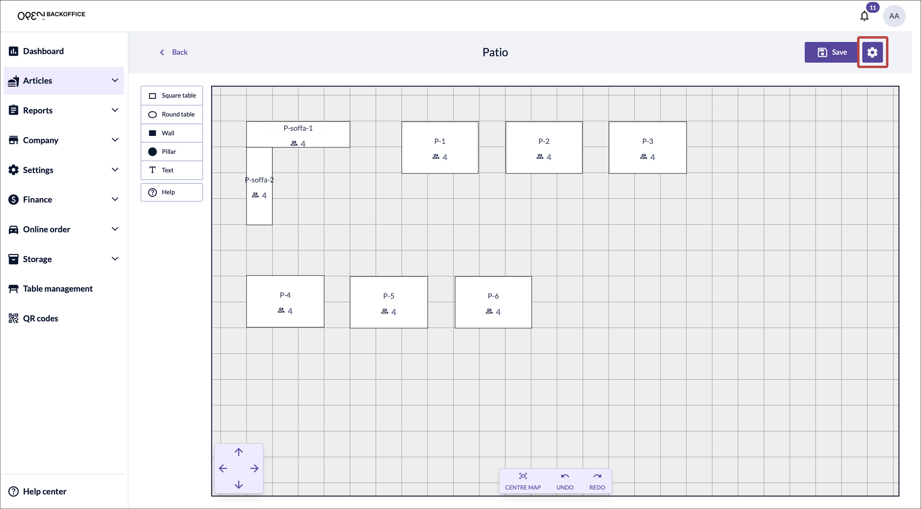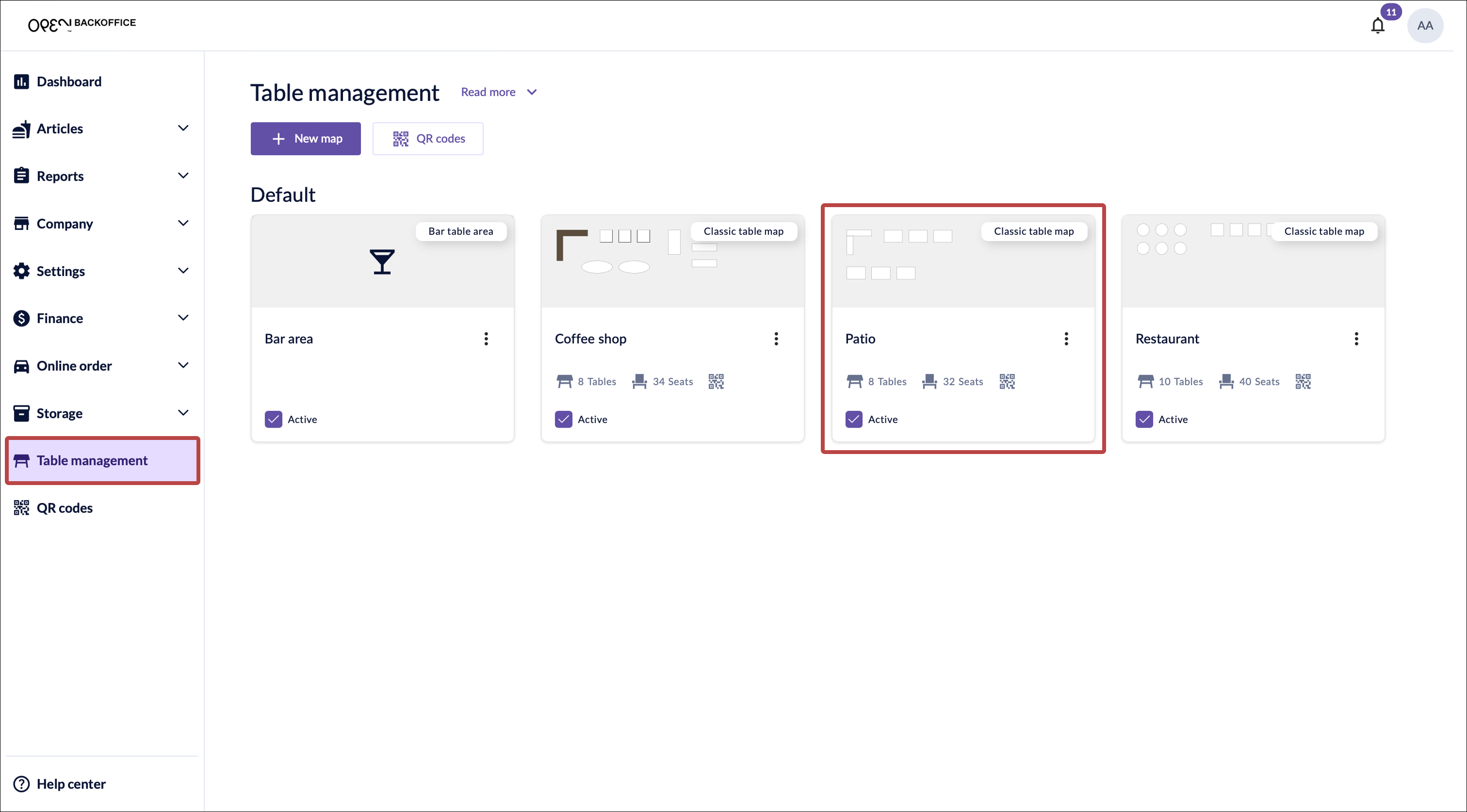 - Go to Table management in the menu and select the table map where you want to enable QR code checkout.