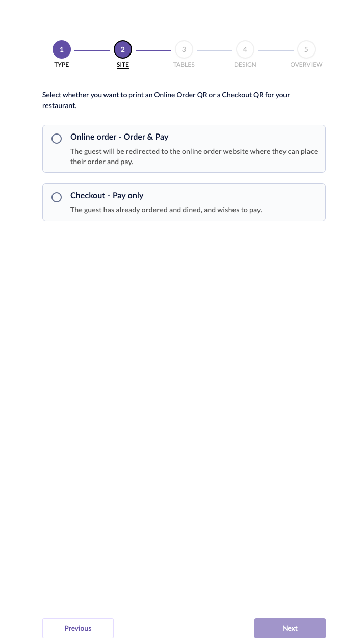 - Online order – Order & Pay – The guest is redirected to the online order website where they can place their order and pay. You can optionally select a specific menu to include in the QR code.
