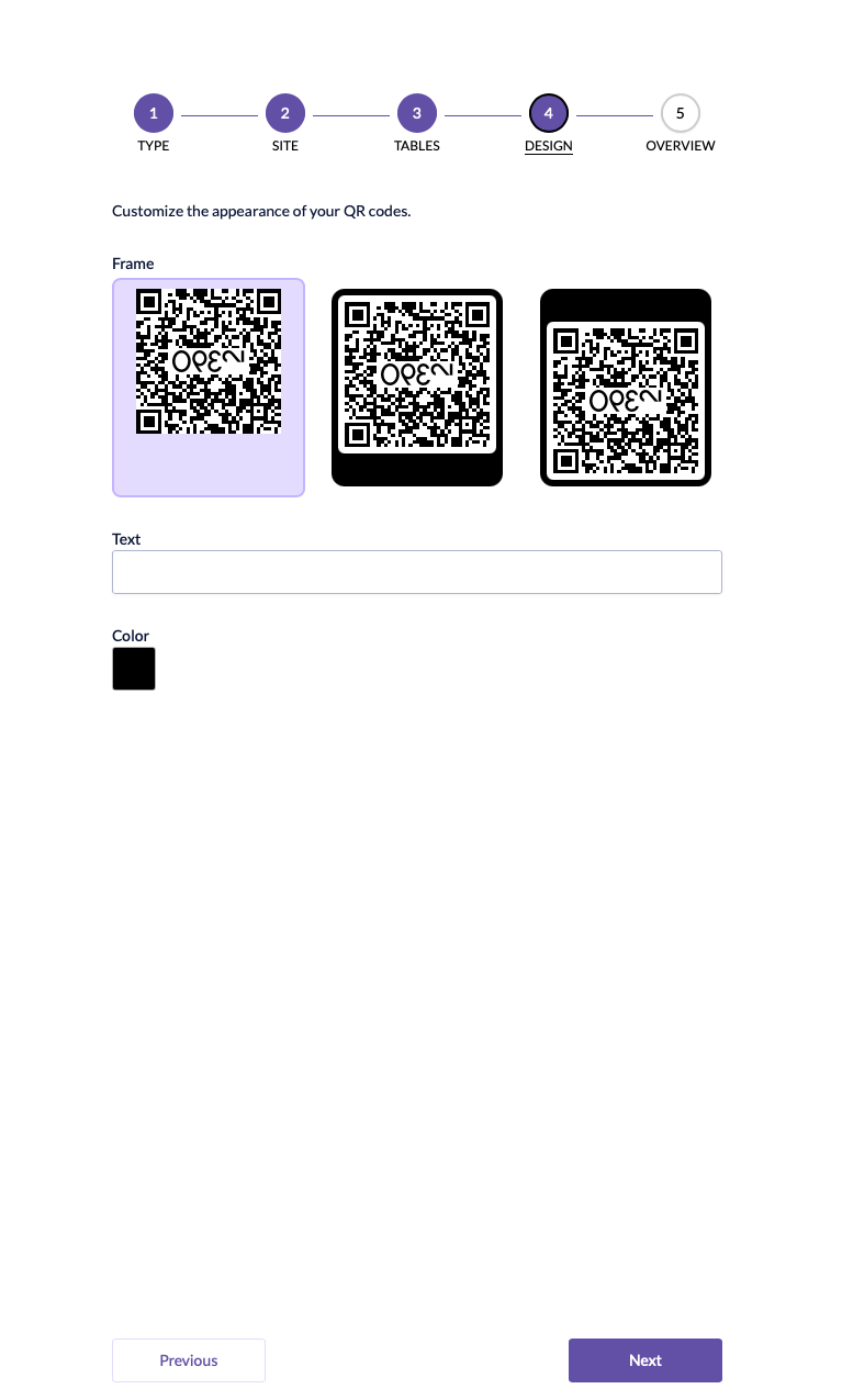 (Only shown when "QR Codes" was selected in Step 1) Customize the visual appearance of your QR codes: